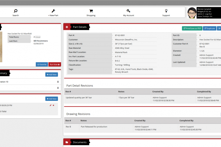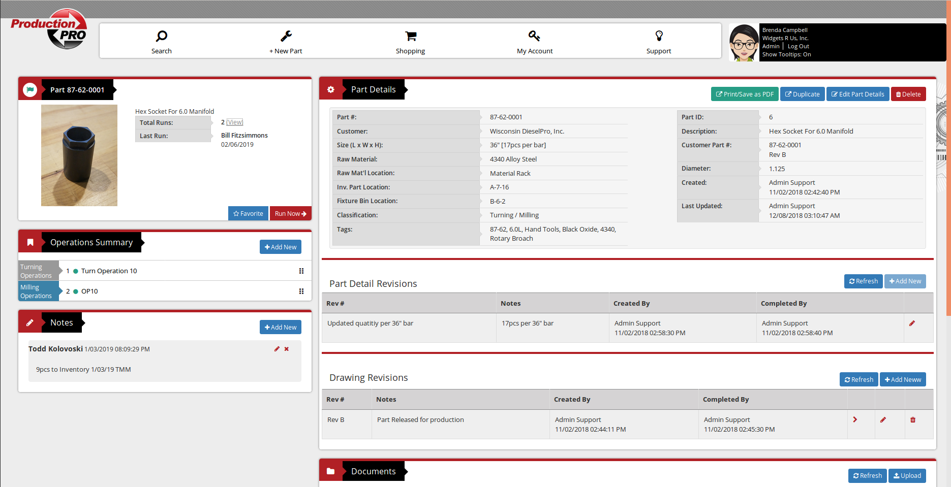 In Production Pro, everything is organized by part. A part might be a finished part, or a subassembly, or any type of product at all. Parts essentially represent a group of operations, procedures, and related documentation that are required to create that part.